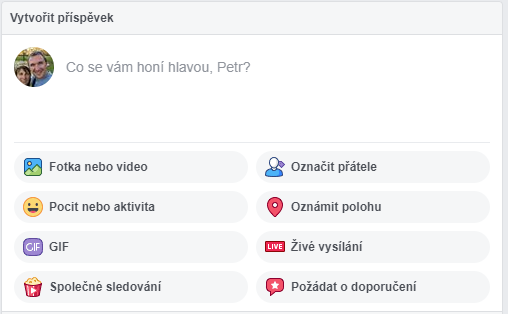 Jestli něco zažilo od začátku března masivní nárůst využití, pak jsou to živé přenosy na Facebooku. Účet na FB má dnes drtivá většina lidí. Praktické využítí tak mají živé streamy pro cvičení, online semináře a školení, výuku. Navíc, živé vysílání lze začít téměř tak jednoduše, jako vložit fotku. Hledejte odkaz ,,živé vysílání“ jako na obrázku níže. Jakmile začnete, všichni vaši známí se o tom dozvědí a můžou se přidat…